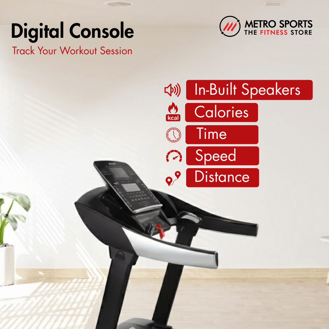 The treadmill includes high-fidelity in-built speakers with USB and MP3 functionality along with a headphone jack, perfect for users who enjoy music while training. Engineered to support a maximum user weight of 150 kg, the frame and build inspire confidence, ensuring safety and stability for daily use in home environments.