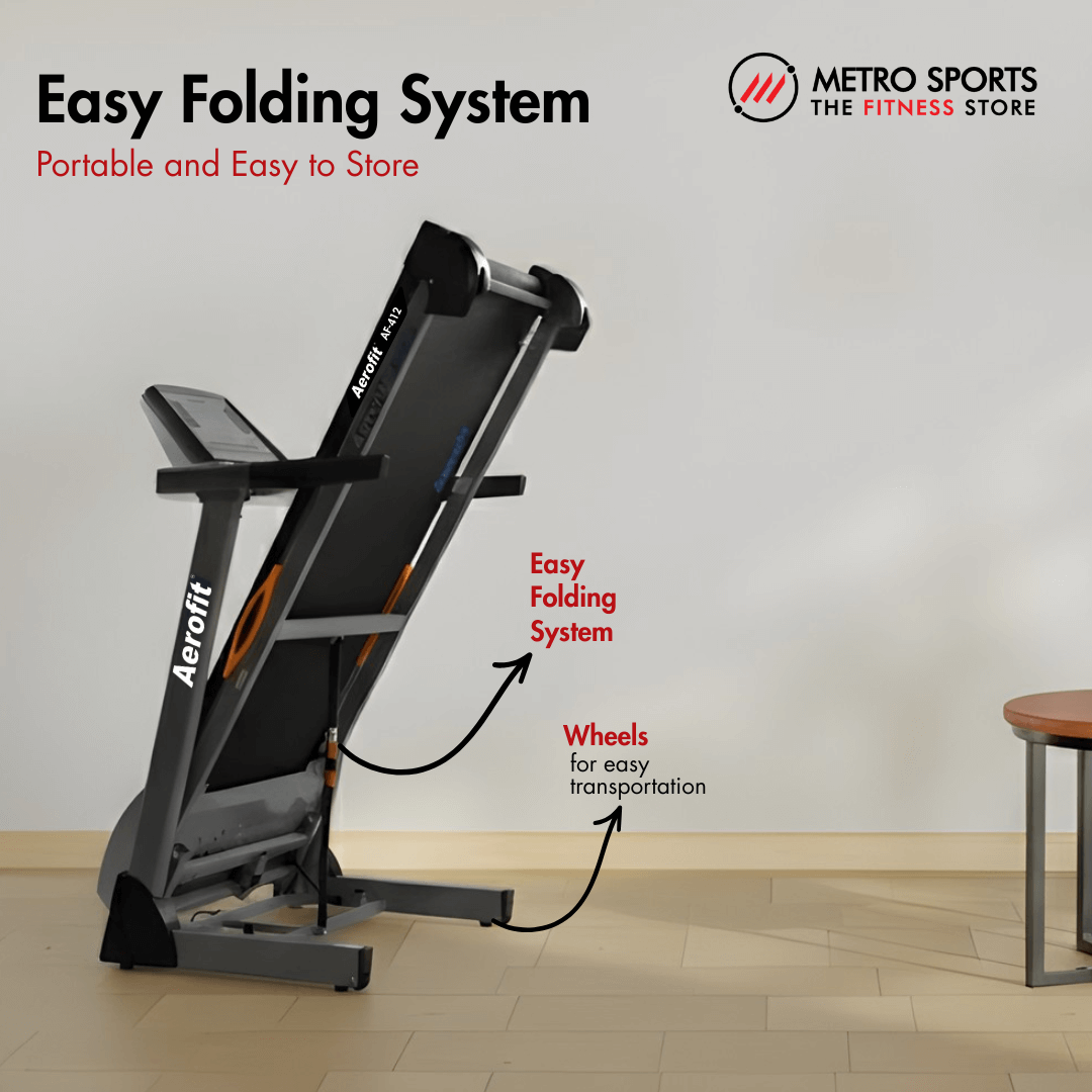 Built for consistent home fitness, the AEROFIT AF-412 Treadmill combines smooth performance and durability with a 2.5HP continuous motor and speed up to 16 kmph. Its 15% automatic incline helps you increase workout intensity naturally. Many users prefer this model because it fits between an entry-level domestic unit and a very light commercial treadmill, making it suitable for walking, jogging, and intense workouts alike.