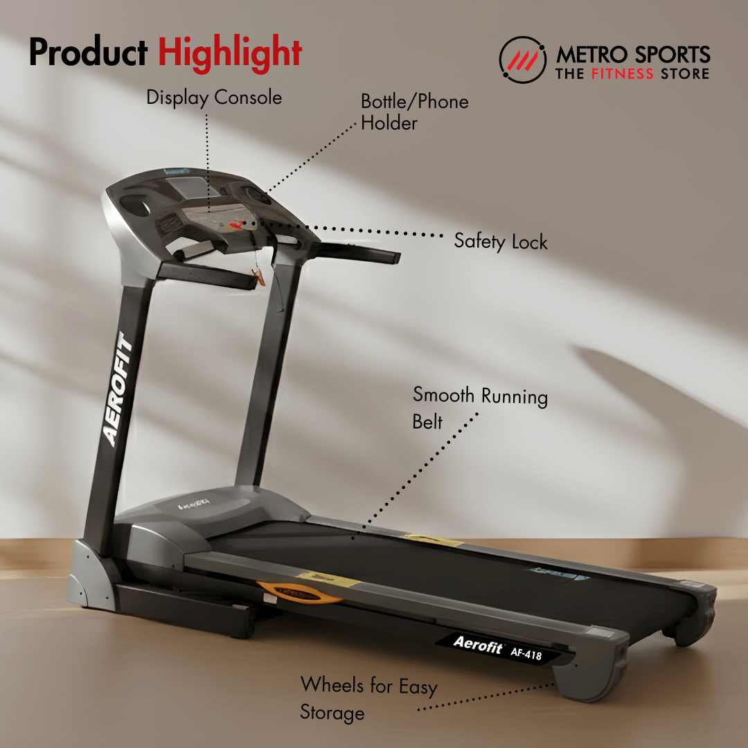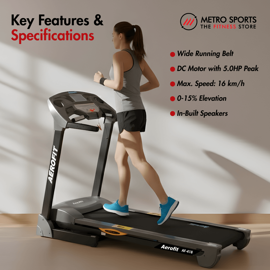 AEROFIT AF-418 Treadmill I DC Motor with 5.0HP Peak Output I LCD Display I Max. User Weight: 120 kg I In-Built Speakers