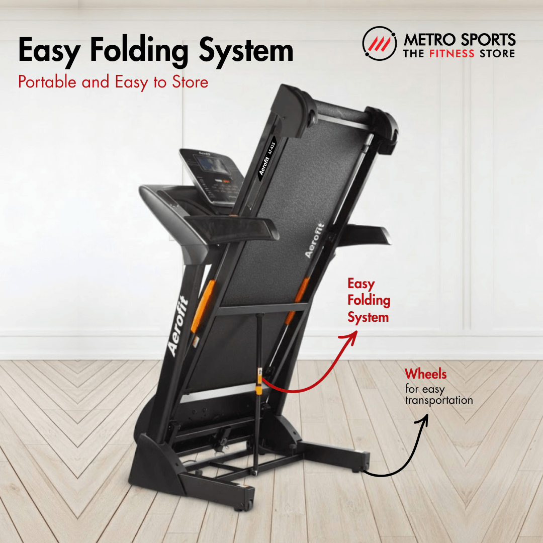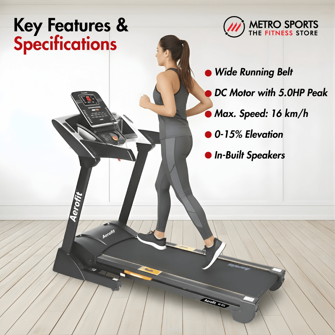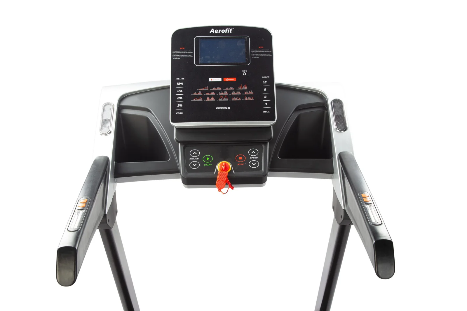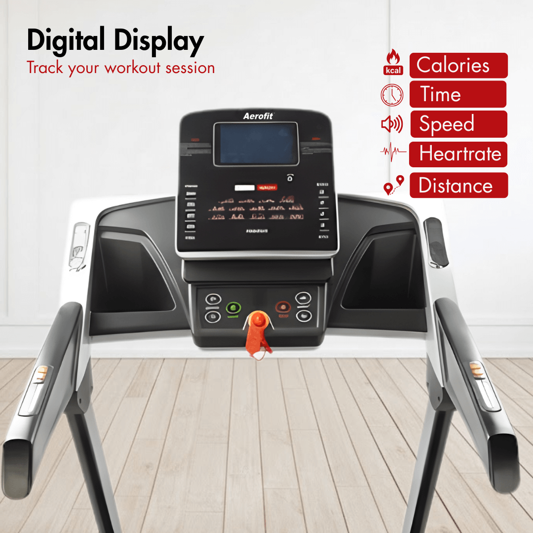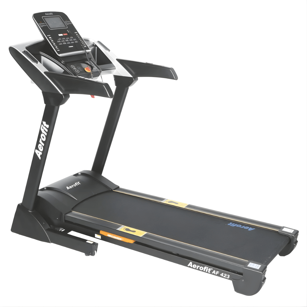 The Aerofit AF-423 Treadmill is built with a sturdy design measuring 74″ (L) x 31″ (W) x 58″ (H), which makes it fits comfortably into most living spaces, making it an ideal addition to a growing home gym setup. The treadmill is powered by a 2.5 HP AC motor that reaches up to 4.0 HP peak output. This ensures smoother performance even during long cardio sessions. You get speed adjustments range from 1 to 16 km/h, which makes it ideal for both beginners and seasoned runners.