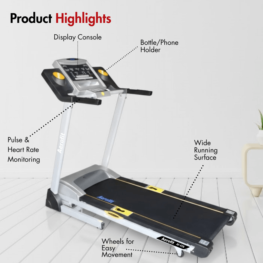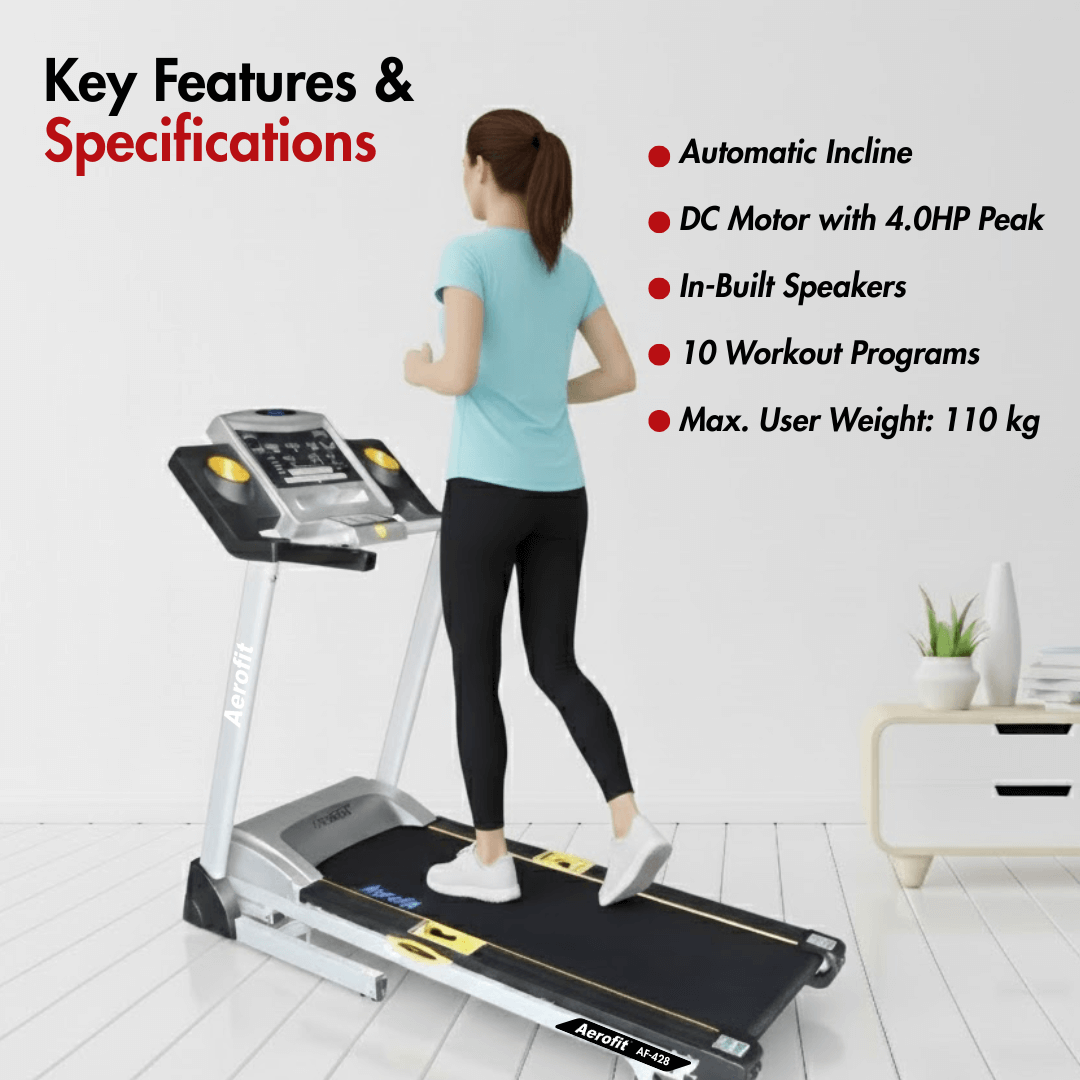 AEROFIT AF-428 Treadmill I Max. Speed: 12km/h I DC Motor with 4.0HP Peak Duty I In-Built Speakers I LCD Display