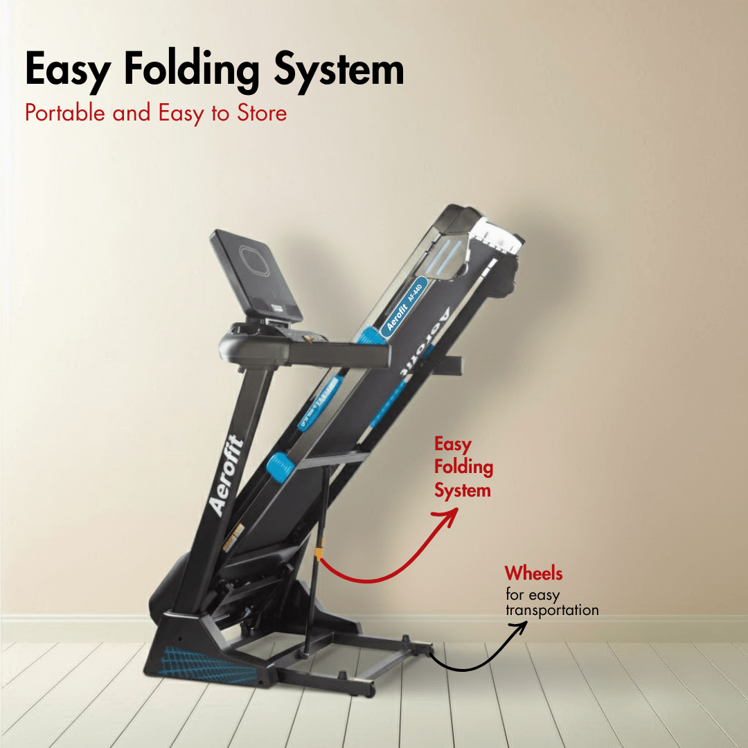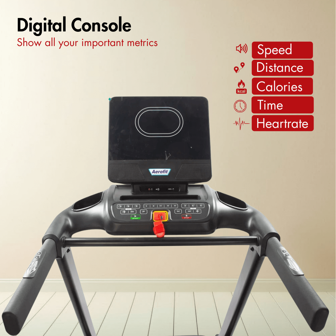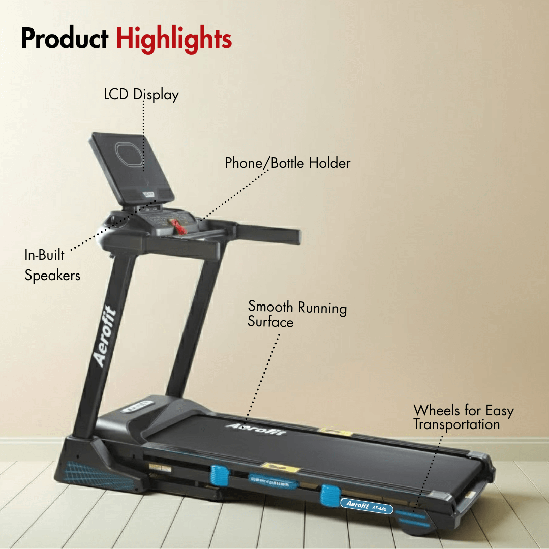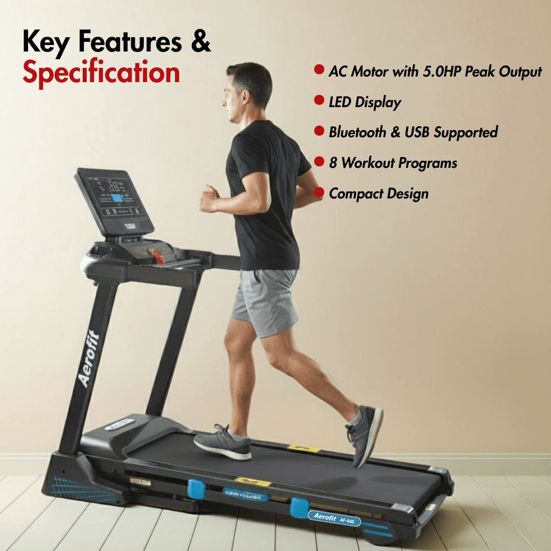 Built with durability, smooth operation and advanced training features, the Aerofit AF-440 Treadmill fits perfectly into any home gym while delivering results that match even a commercial treadmill setup. Powered by a robust AC Motor with 2.5 HP continuous and 5.0 HP peak output, the AF-440 maintains consistent performance during long runs and high-intensity cardio sessions. The Digital Concepts P.W.M. Control ensures stable speed transitions, allowing runners to train confidently from 1 to 18 km/h. Whether you’re walking, jogging or sprinting, the machine remains quiet and efficient.