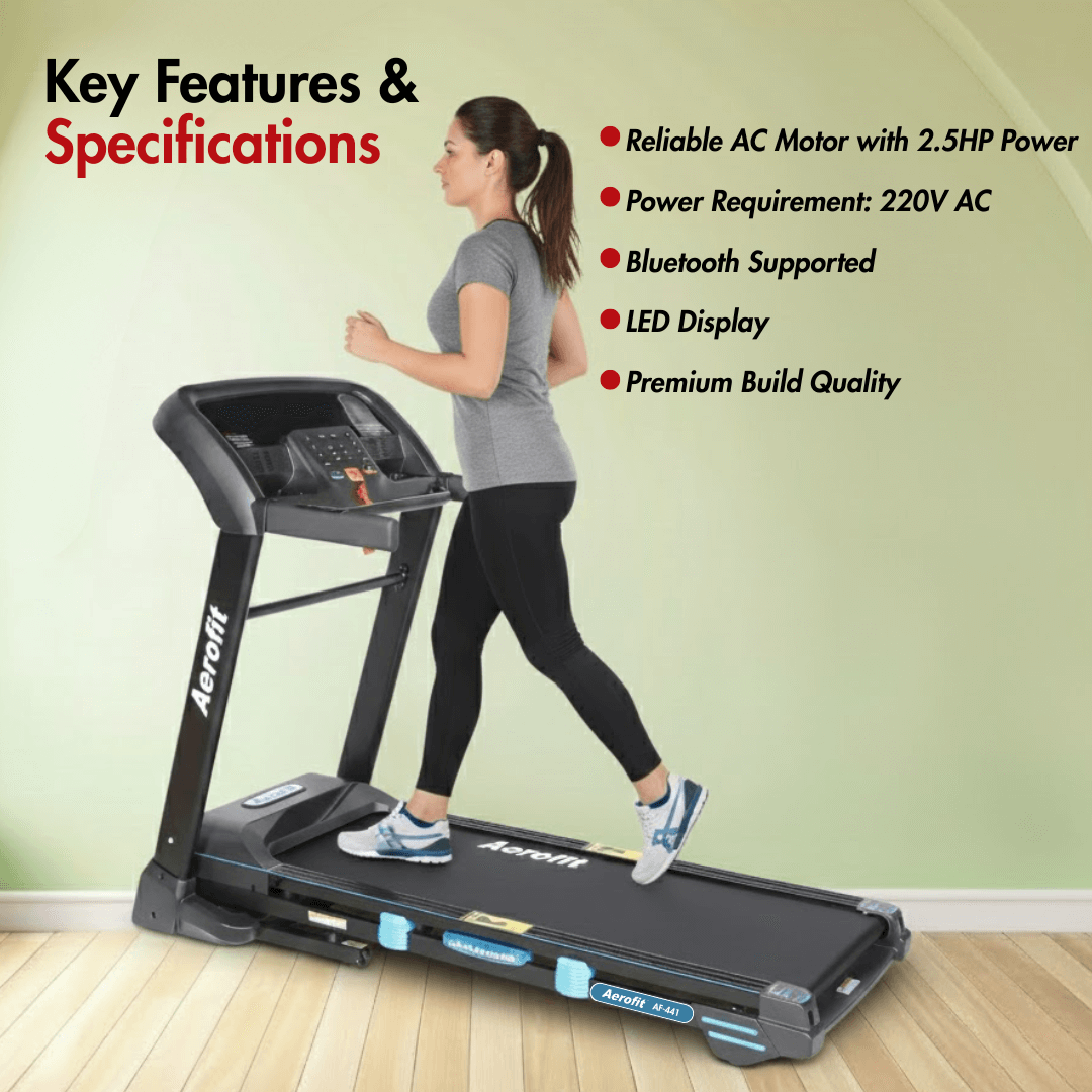 With a standard 220V AC power requirement, the machine is simple to install at home, and it pairs well with recovery tools like massagers to complete your workout ecosystem. Whether you’re aiming for fat loss, stamina building, or overall fitness, the Aerofit AF-441 is a dependable and powerful treadmill for home use built to support long-term results.