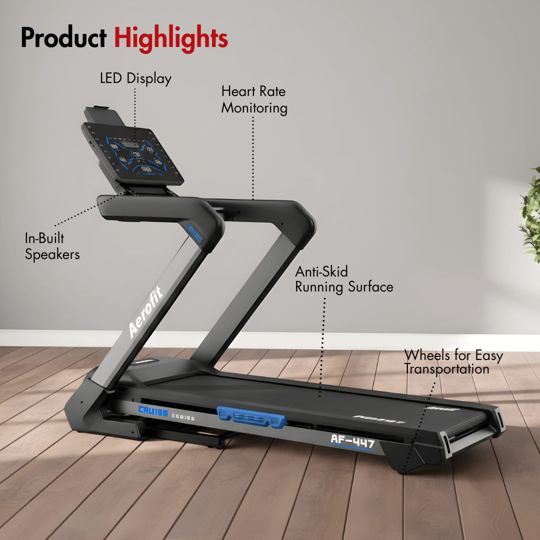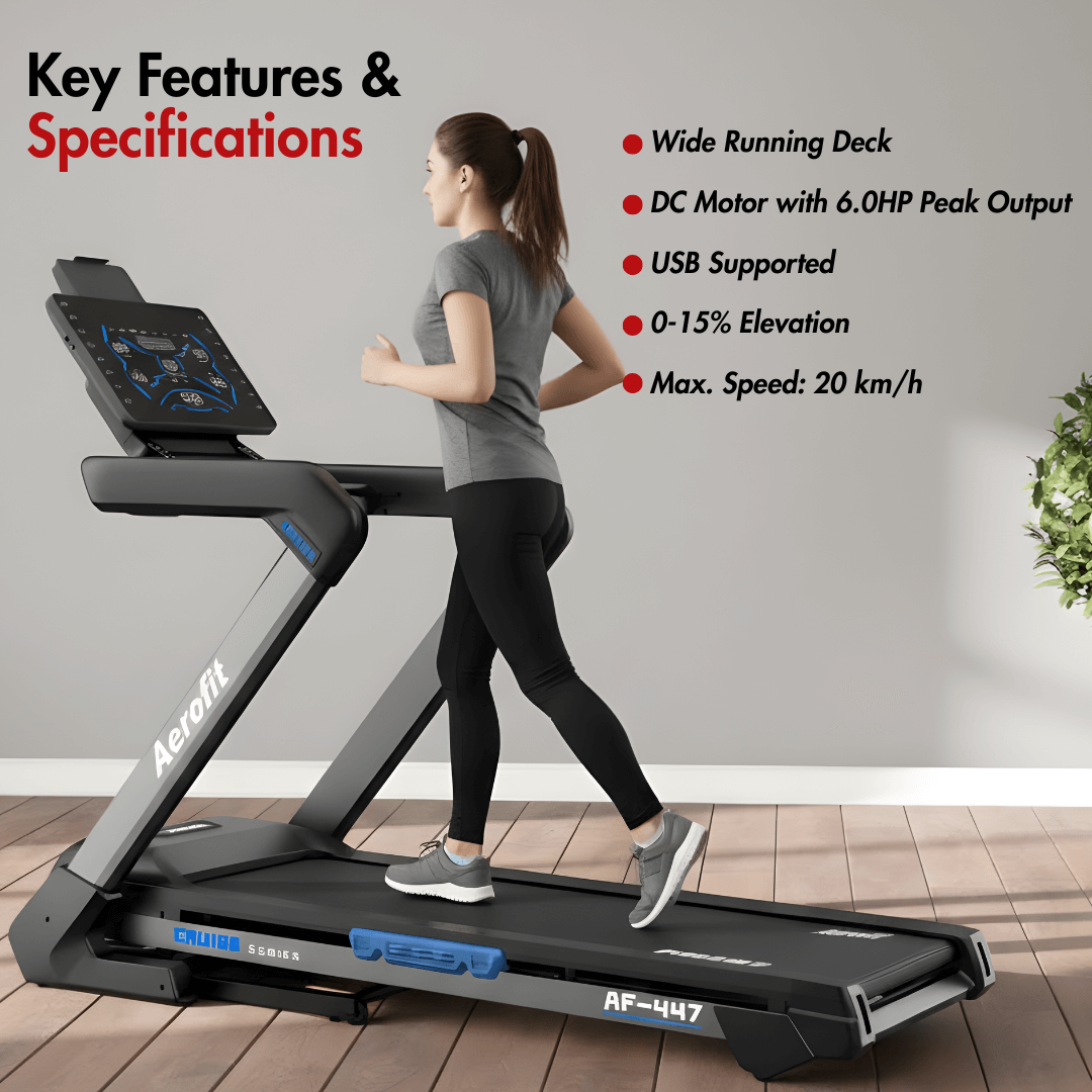 Aerofit AF-447 Treadmill I Max. Speed: 20km/h I USB Supported I DC Motor with 6.0HP Peak Duty I LED Display
