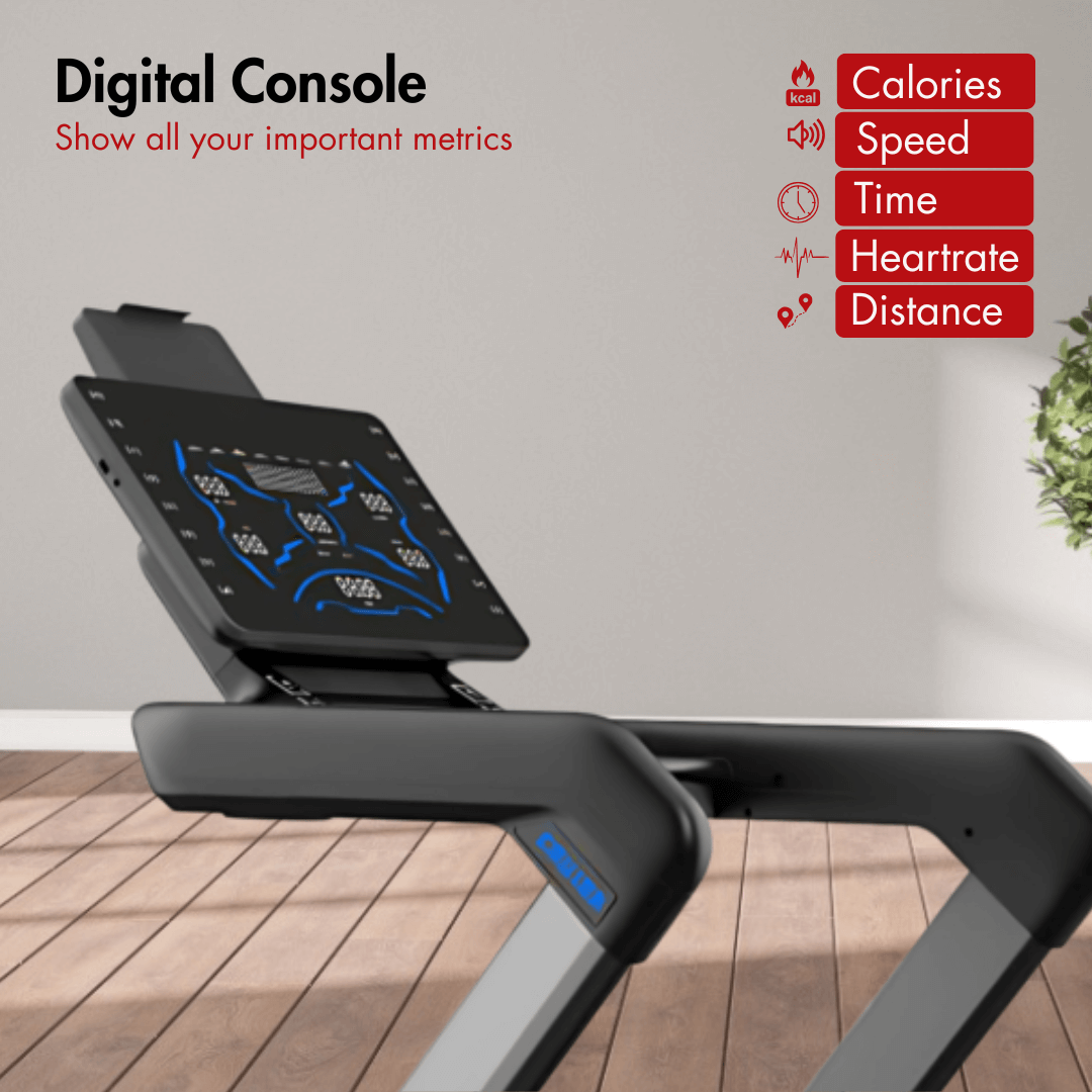 • Display Feedback: Speed, Time, Distance, Calories, Incline, Pulse