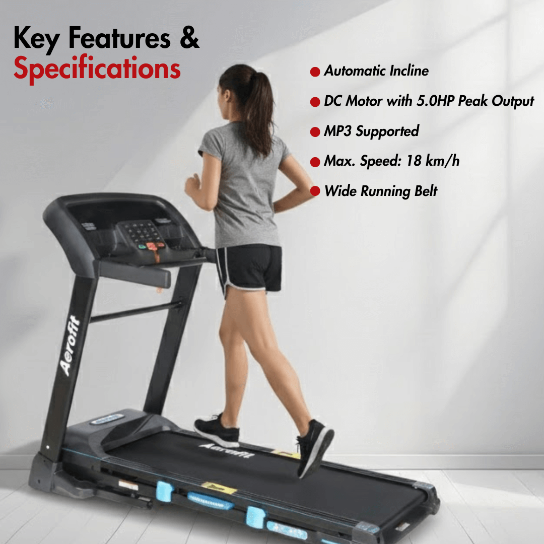 AEROFIT AF-451 Treadmill I MP3 Supported I DC with 5.0HP Peak Output I Max. Speed: 18 km/h I Compact Running Machine for Home
