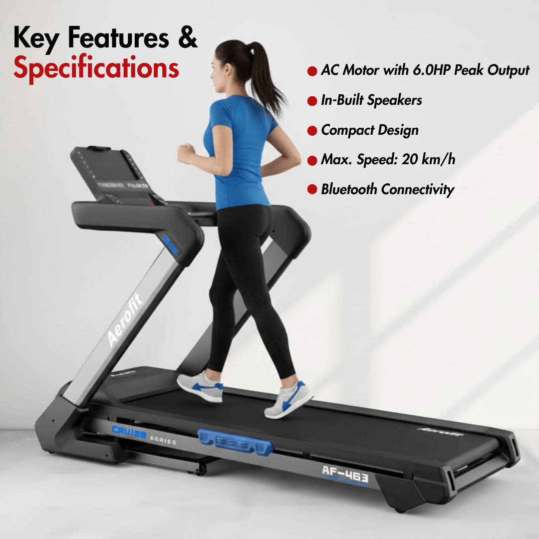 Aerofit AF-463 Treadmill I Digital Console I Bluetooth & USB Supported I Max. Speed: 20 km/h I 16 Workout Programs