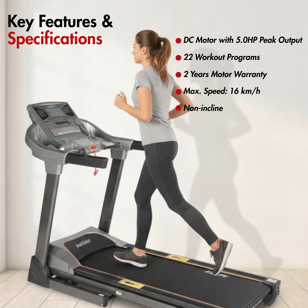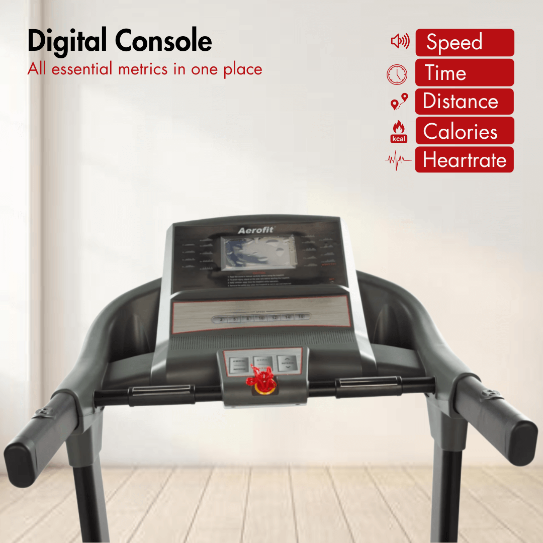 The treadmill’s 60” x 20” wide running surface offers ample space for natural and comfortable sessions, making workouts feel less restrictive, especially important for longer endurance sessions. You also get blue backlit LCD display with a single-window layout which showcase all essential workout data in a single and proper way, reducing distractions and helping users stay focused. With 22 training programs, including preset routines, fat-focused modes, multiple user profiles, and manual control, the AF-503 adapts well to both beginner and intermediate users.