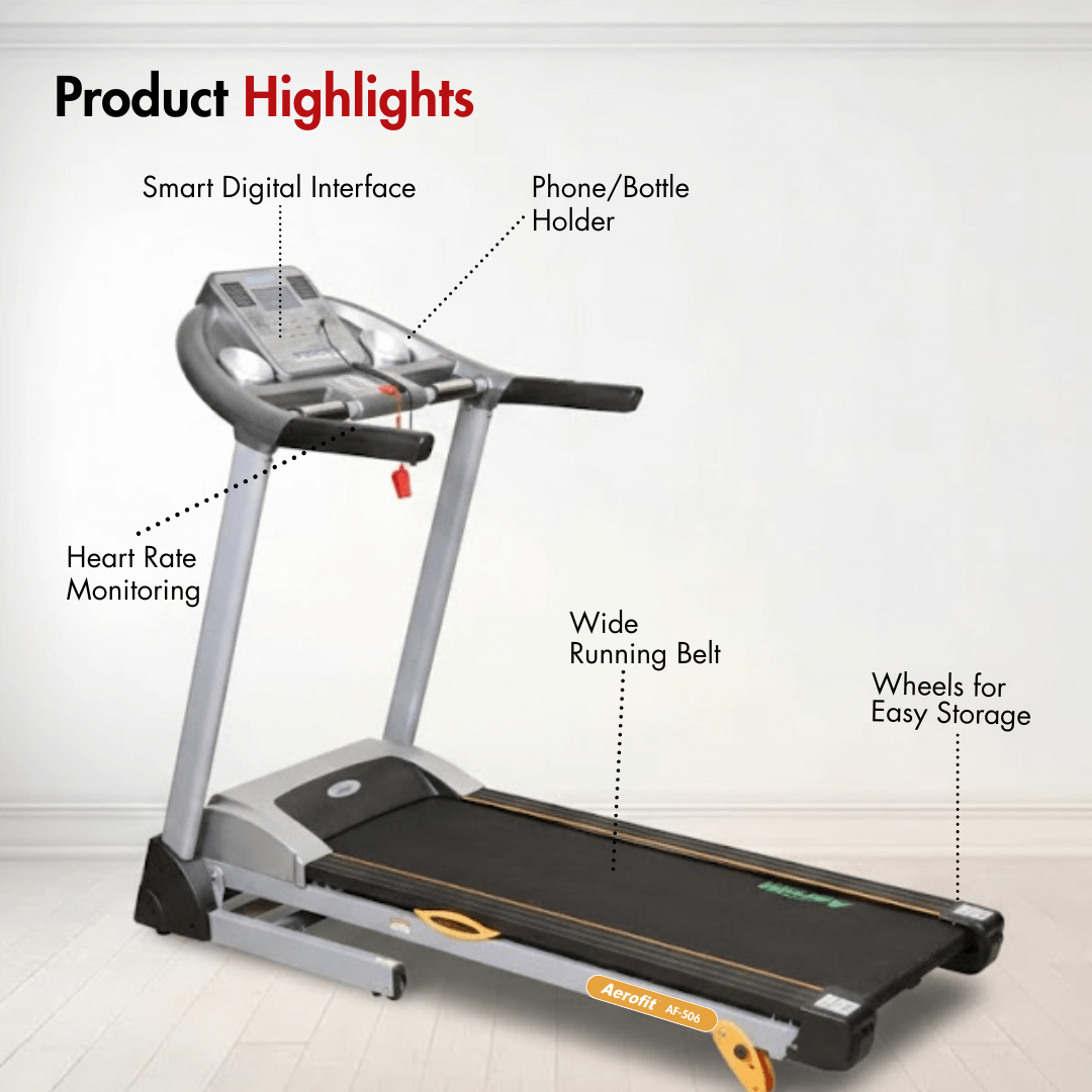 Designed for efficient home fitness, Aerofit AF-506 Treadmill features a strong 2.0 HP DC motor (4.0 HP peak) and smooth digital PWM control, offering consistent power for all your indoor running sessions. The Digital Concepts P.W.M. control system helps maintain efficient motor operation while keeping noise levels minimal, an important factor for home environments.