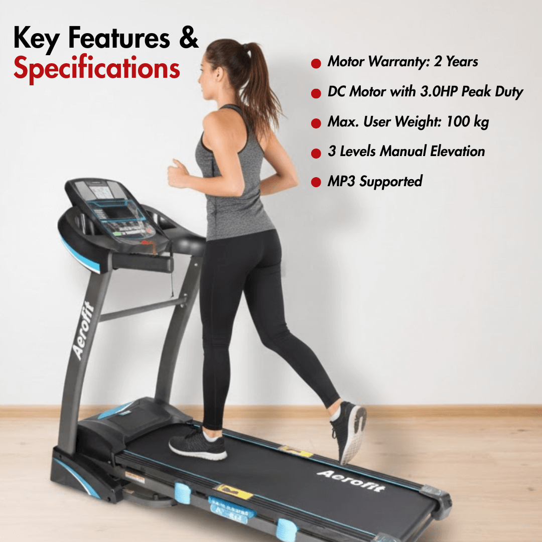 This treadmill also supports multimedia as it has In-built MP3 speakers, which enhance your workout experience, making long sessions more engaging and also helping you stay consistent in your workout routine. With a maximum user weight of 120 kg, the AF-526 balances durability and comfort, making it suitable for most households. A 2-year motor warranty and 1-year coverage on other parts add peace of mind for those people who intent to use this machine for long-term use.