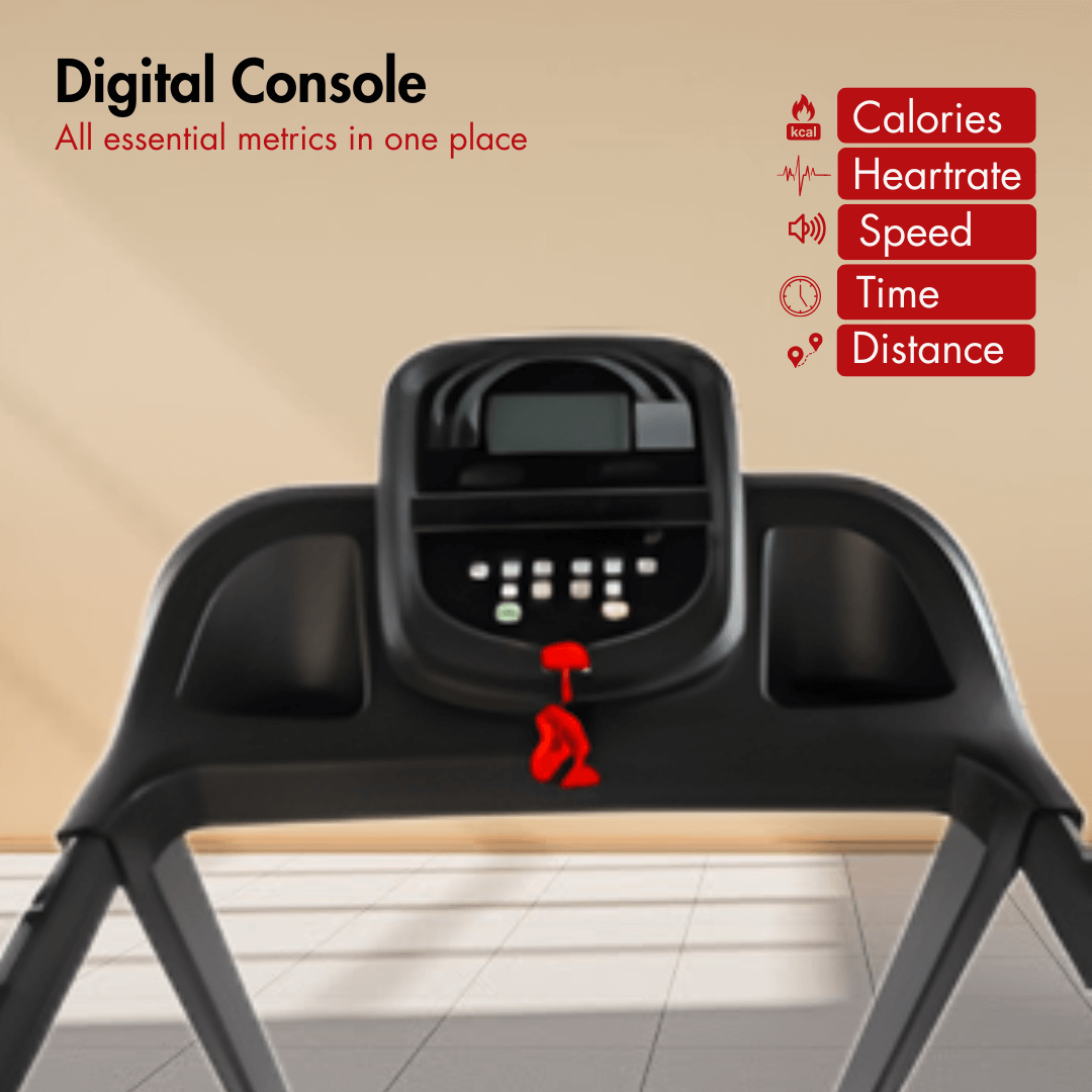 Your issue of getting bored or not able to endure long workouts can be solved as this model has integrated in-built speakers, keeping workouts engaging and motivating. With a maximum user weight capacity of 100 kg, the treadmill is well-suited for most household users focused on long-term fitness.