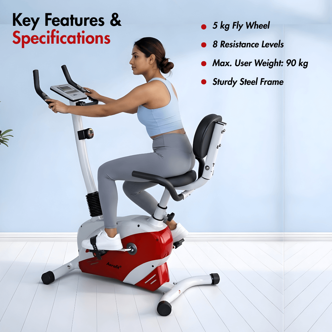 With a compact footprint of 39” (L) x 22” (W) x 52” (H), the Aerofit AF-683U Magnetic Bike fits easily into home workout spaces without compromising stability or riding comfort. This upright bike comes with 8 levels of manual resistance, which makes it suitable for beginners as well as users looking to gradually increase their cardio intensity.