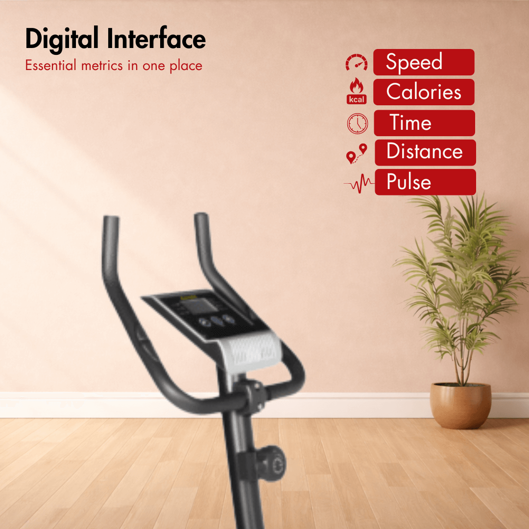 You can track your workout progress by using an easy-to-read LCD display console that shows multiple feedback metrics such as time, speed, distance, odometer, pulse, and calories burned. This makes the bike a valuable addition alongside other home fitness solutions like cross trainers or compact strength setups.