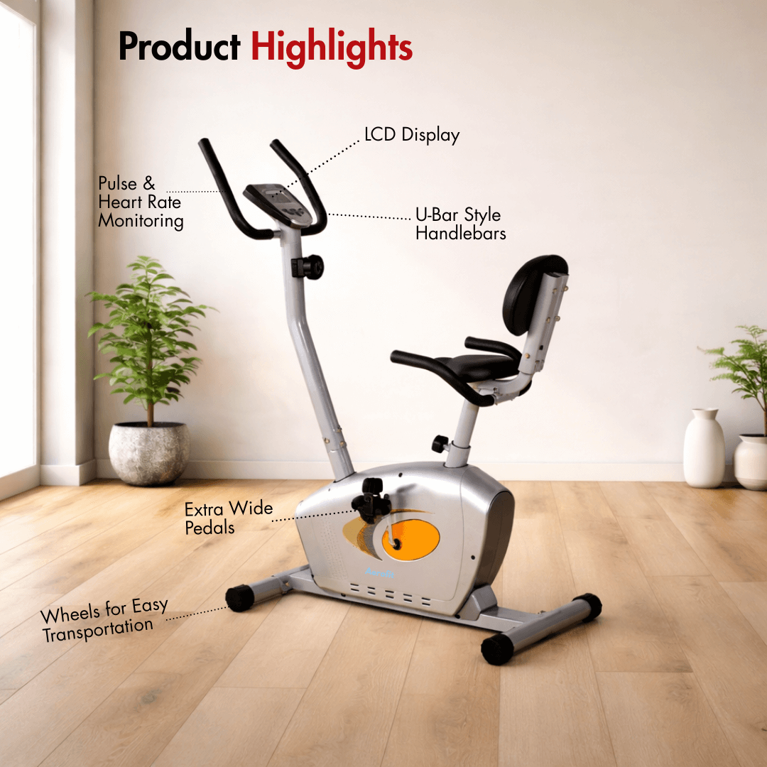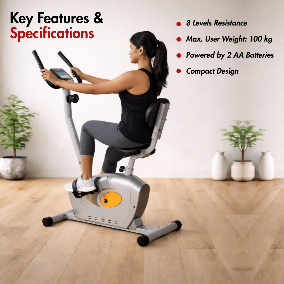 The Aerofit AF-685U Magnetic Bike has a space-efficient footprint of 45” (L) x 23” (W) x 54” (H), which helps it in integrating easily into home workout areas without overwhelming the room, making it suitable for regular indoor cardio sessions. You can adjust the intensity of your workout by using 8 levels of manual magnetic resistance, which allows users to customize the resistance according to their fitness goals or body capabilities.