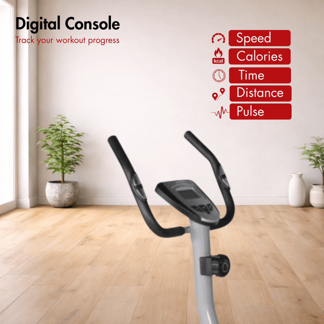 Comfort plays a major role in this upright bike’s design. This comes with a comfortable seat with backrest support and 8-stage vertical adjustment that helps in maintaining a proper posture during longer rides. Extra-wide, self-balanced pedals with adjustable straps enhance stability, delivering a secure feel similar to premium commercial upright bikes, yet optimized for domestic use.