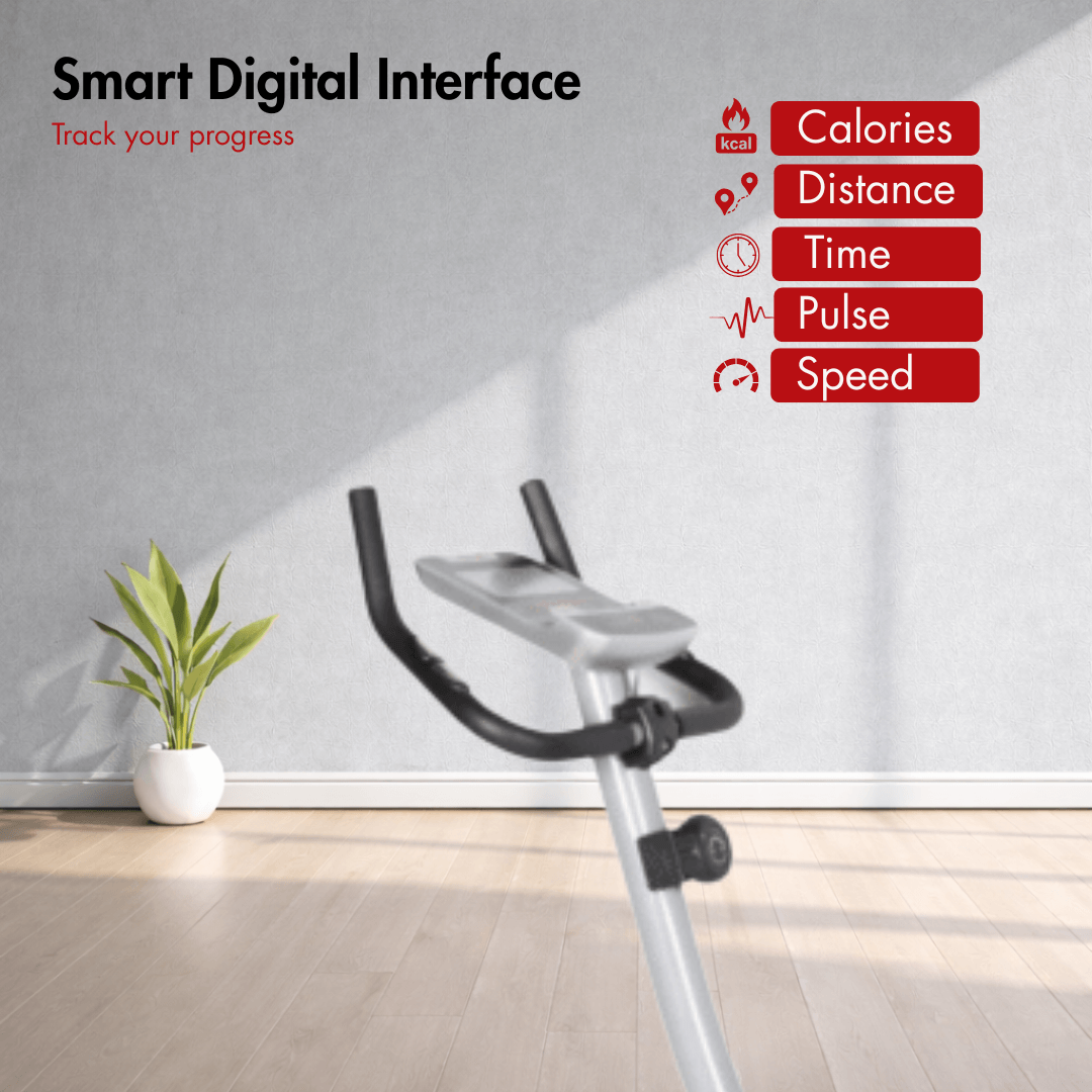 At its core, the bike comes with a 6 kg flywheel paired with a center-design drive system and a super-silent poly-V belt, ensuring fluid pedaling motion. The 8 manual resistance levels allow users to gradually increase their workout intensity, making it suitable for beginners as well as those maintaining daily fitness routines alongside other equipment like cross trainers or treadmills.
