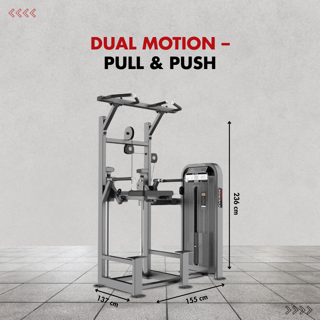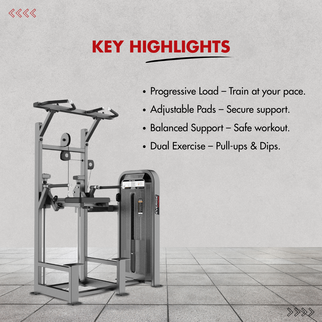 Assisted Dip Chin is a versatile machine designed to facilitate various upper body exercises. Its unique dual position handles allows exercise variation. This machine also offers a foldable kneepad for unassisted training and it offers a weight stack of up to 220 lbs, making it an ideal choice for a diverse range of users.