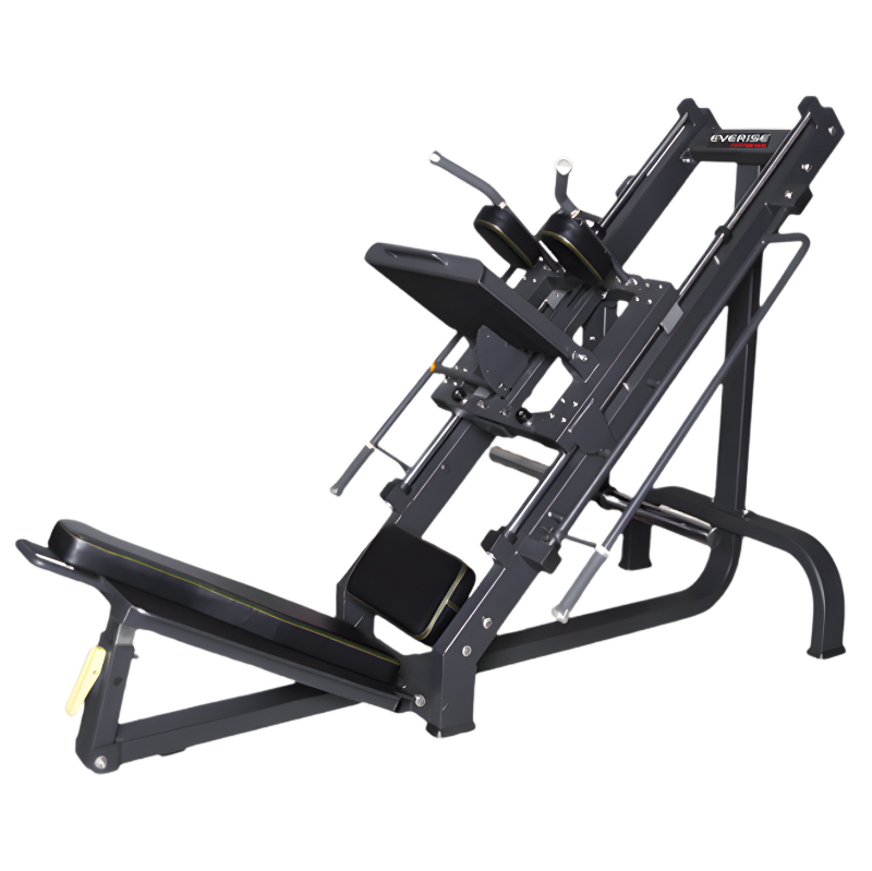 Angled robust design for accurate training. Carriage travels on linear bearing for friction free & smooth performance. Big non-skid high quality rubber foot platform for trouble free workout. Unique design allows traditional squat exercise for better isolation of quadriceps with safety of a back support pad. Ergonomic adjustable seat protects lower back. Inbuilt plate holder allows easy loading & unloading of weight plates. A stopper minimizes risk while performing exercise.