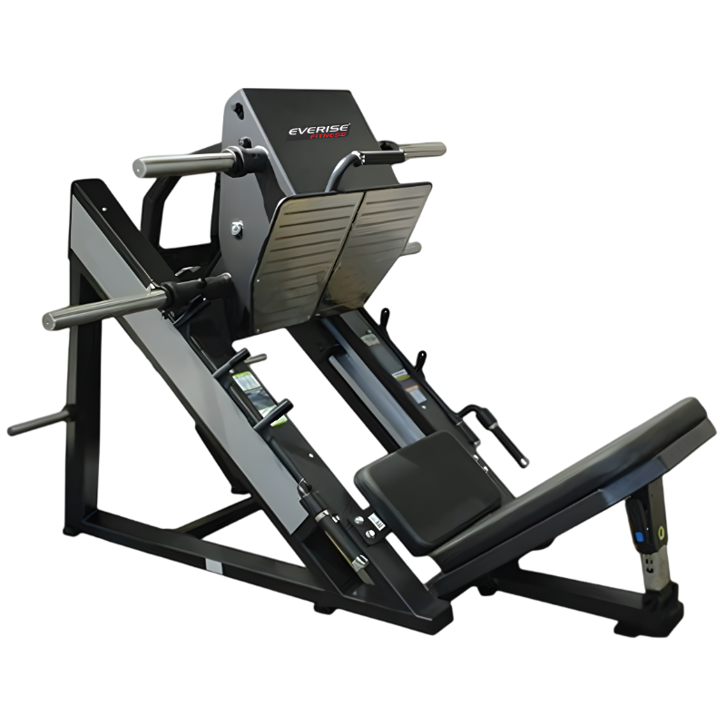 Leg Press with advance motion is for accurate training. Carriage travels on linear bearing for friction free & smooth performance. Big non-skid high quality rubber Foot platform. Ergonomic adjustable seat protects lower back. Inbuilt plate holder allows easy loading & unloading of weight plates. A stopper minimizes risk while performing exercise