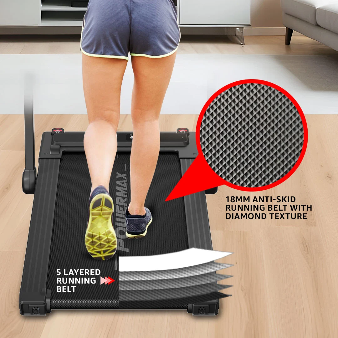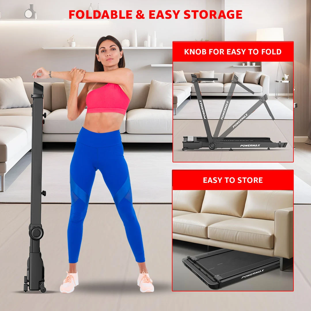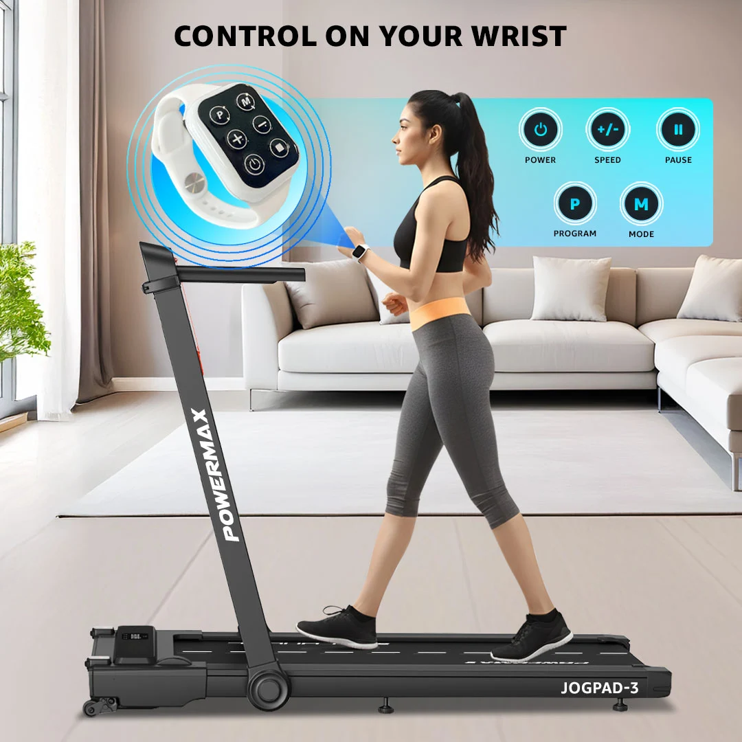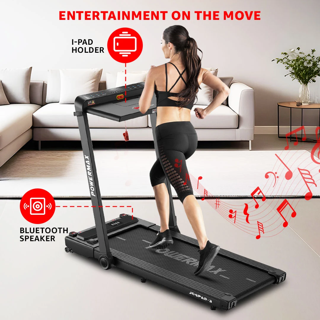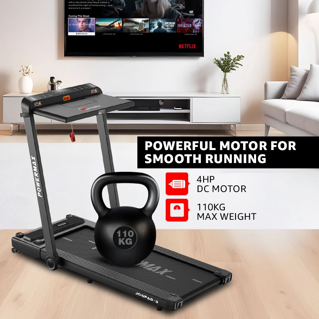 The Powermax Fitness JogPad-3 Treadmill is designed for modern lifestyles that demand both convenience and performance. Powered by a reliable 4HP DC motor, it delivers a smooth and consistent workout experience with speeds ranging from 1.0 to 12 km/hr—perfect for walking, jogging, or light running at home or in the office.