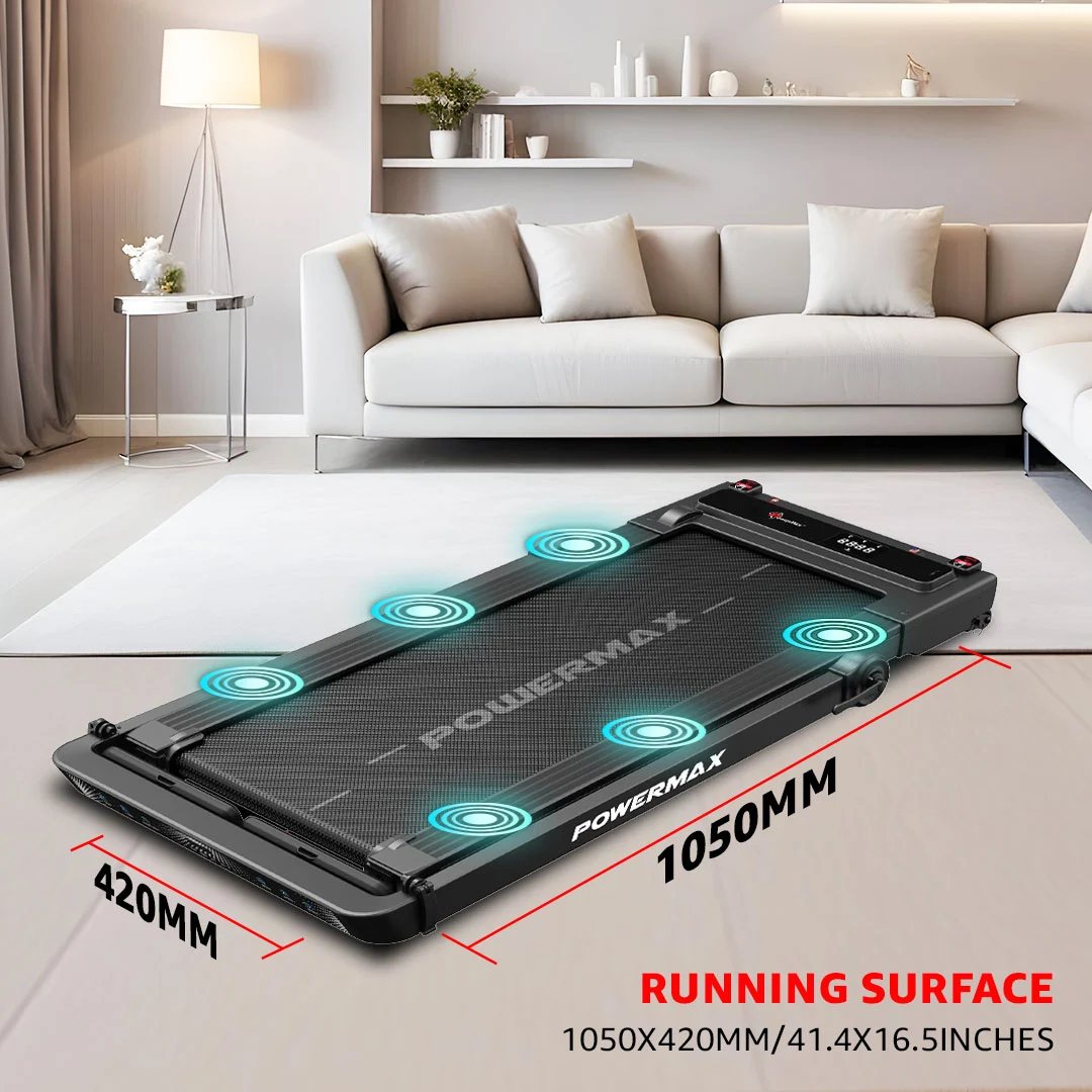 Its compact yet durable build features a 1050 x 420 mm running surface, supported by an 18 mm pre-waxed phenolic coated deck for low maintenance and long-lasting performance. The 5-layer anti-skid diamond texture running belt, combined with rubber cushion shock absorption, ensures joint-friendly workouts while minimizing noise and vibration. Whether you’re a beginner or a regular fitness enthusiast, the JogPad-3 adapts effortlessly to your routine.