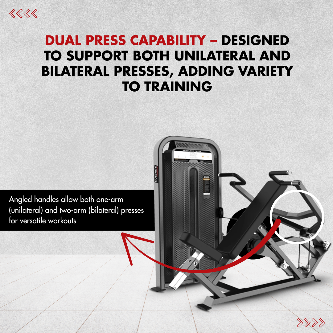 The Shoulder Press machine is designed to isolate and strengthen the shoulder muscles effectively. With its angled handles, users can perform both unilateral and bilateral movements, providing versatility in their workout routine. This allows for targeted engagement of the shoulder muscles from various angles, promoting balanced muscle development and overall shoulder strength.