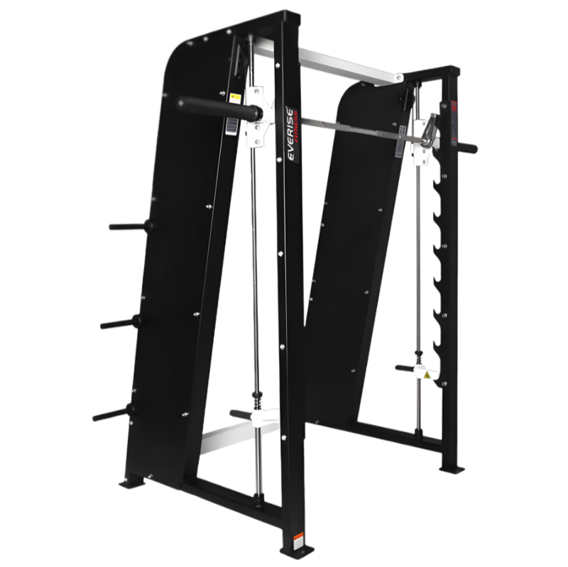 Ideal and versatile unit for beginners as well as professional bodybuilders. Engineered with racking pegs for 10-weight bar adjustments. Olympic bar travels on linear bearings for smooth operation. Extra feature of shroud is provided to make the machine dust free and to look elegant.