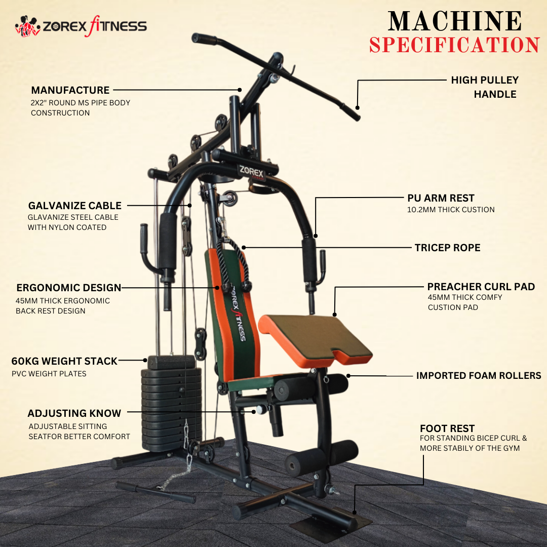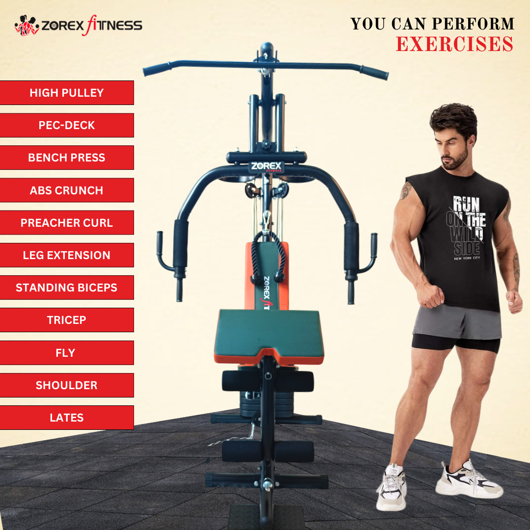 Zorex Fitness HGZ-1003 Home Gym With Preacher Curl I Inbuilt Bearing Pulley I Adjustable Preacher Pad I User-Friendly Back Rest Design I Max. User Weight: 150 kg